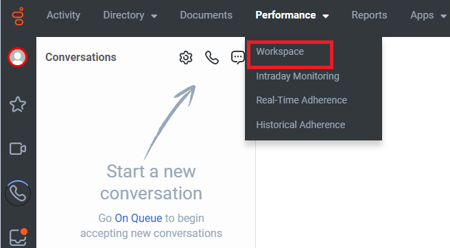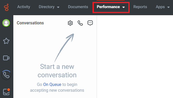 1. You will need to log into Genesys: https://purecloud.deakin.edu.au and then access the Performance drop-down menu.