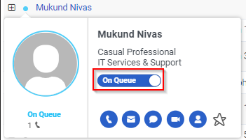 4. Once you have selected a queue you will be redirected to a screen showing you all agents within the queue and their current call stats and status. Bring your cursor to hover over the dot next to the agent's name as demonstrated in the screenshot below.