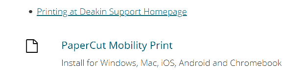 You can install Deakin's Managed Print Service, Papercut, on your Apple IOS Personal Device using the following instructions.