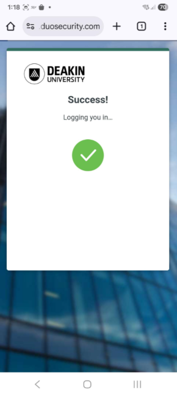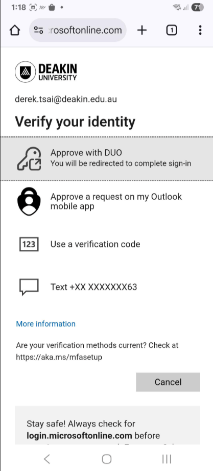 Select 'Approve with DUO' to verify your identity, then it pushes notification to your smartphone DUO app to get approval.