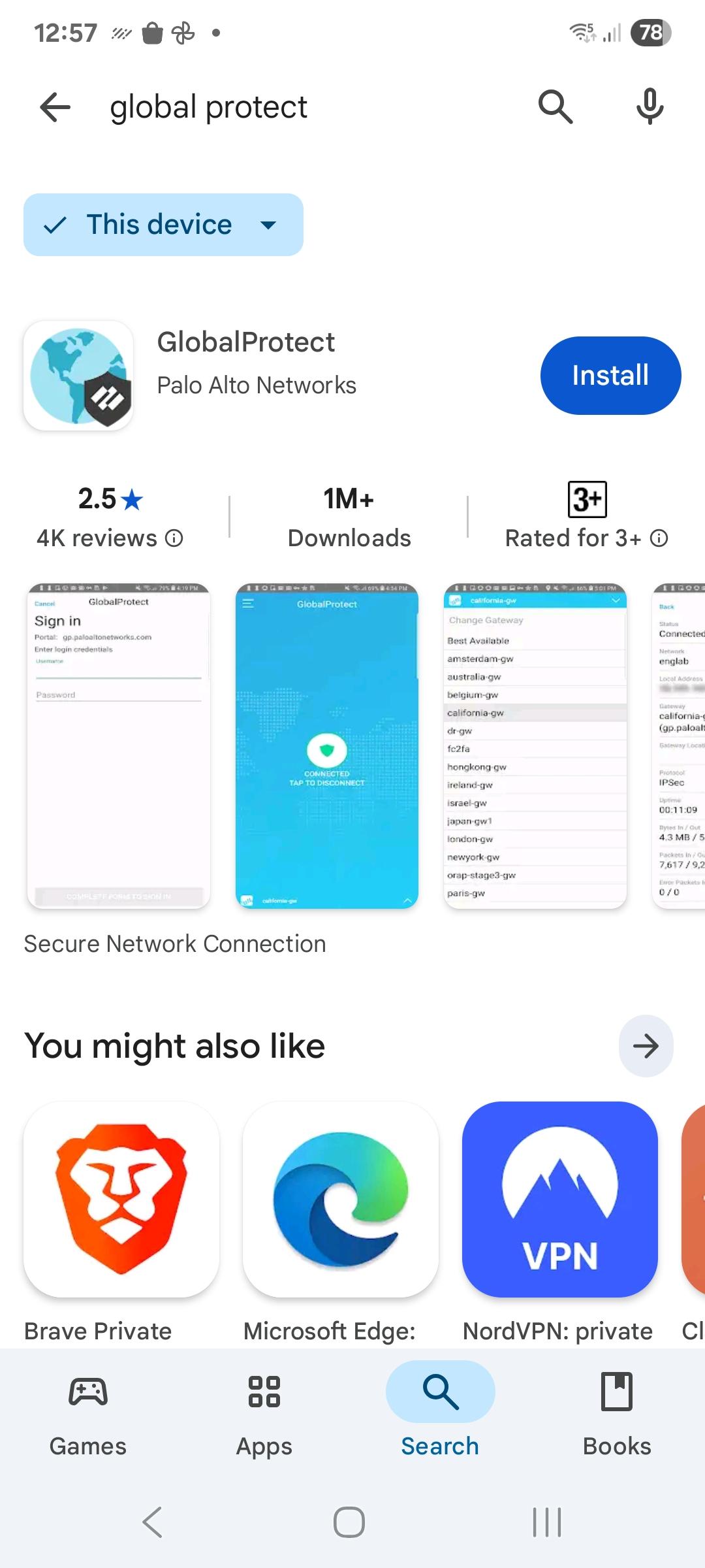 From the GlobalProtect app product page, tap Install.