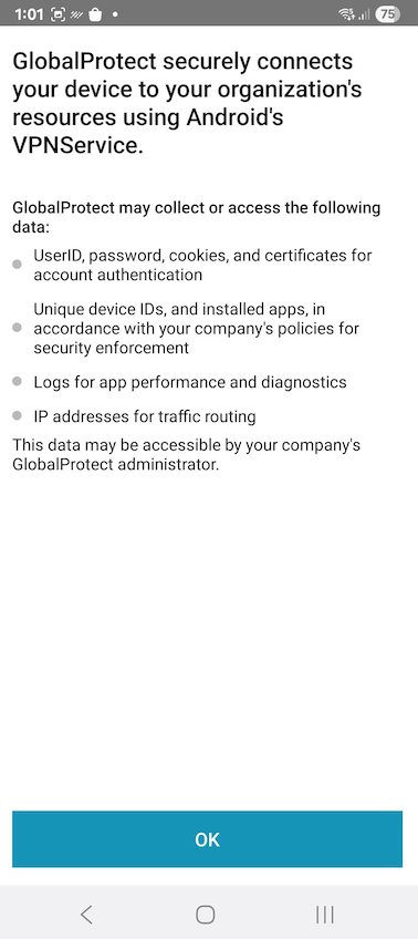 When prompted, review and Accept the information for which GlobalProtect needs access
