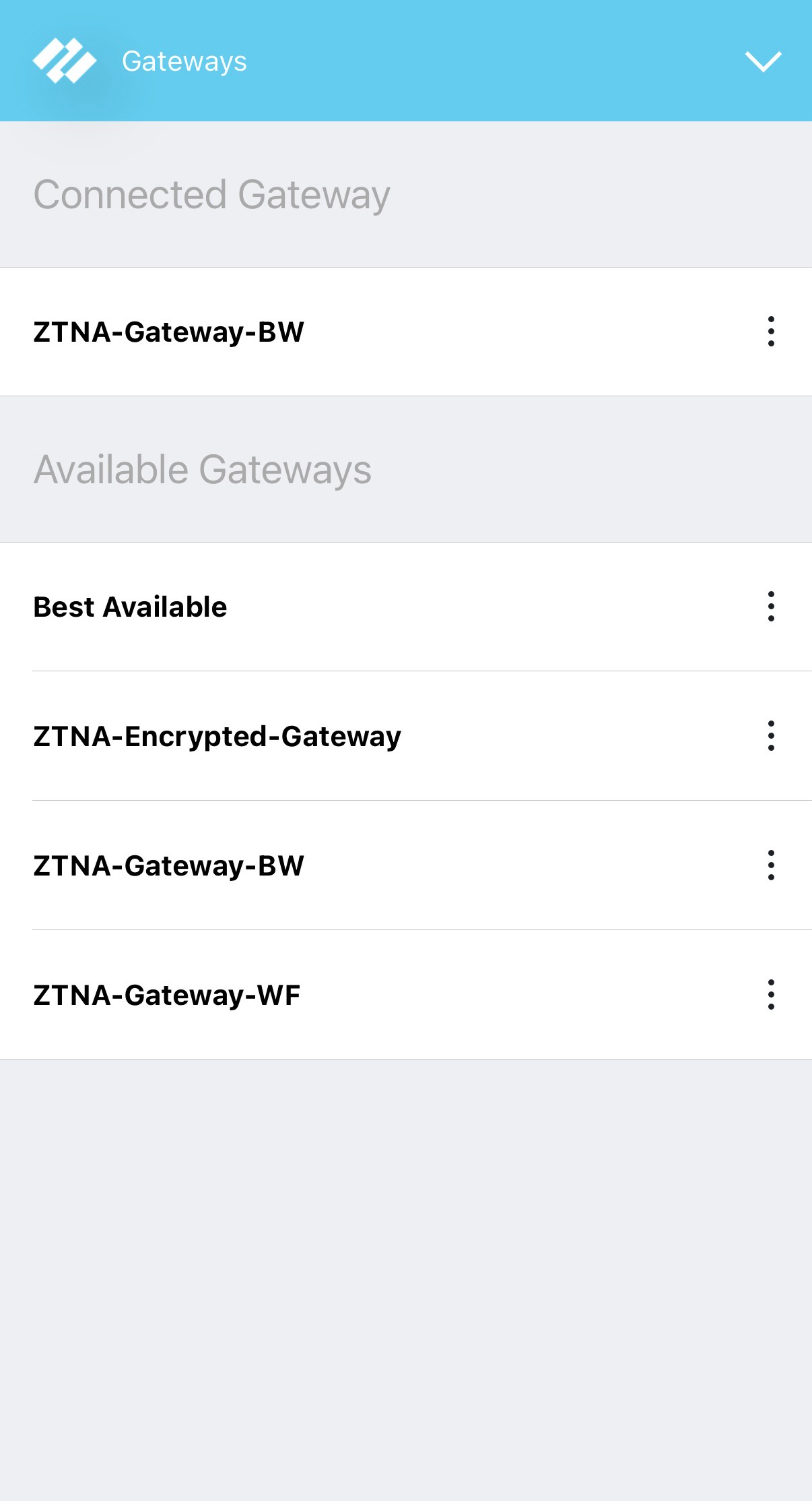 By default, user will be connected to 'Best Available Gateway' automatically.