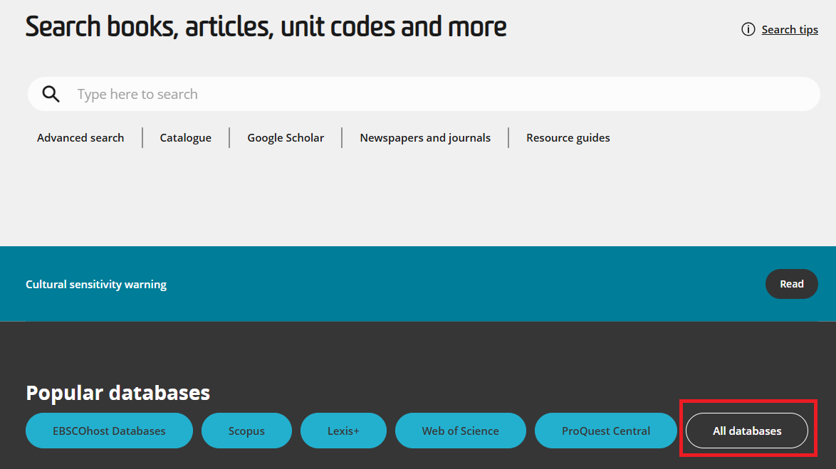 - Scroll down to Popular databases and click on the 'All databases' button.