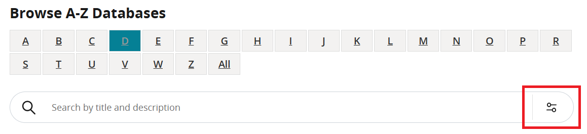 - Below the alphabet, there’s a search field. Click on the filter button to the right of that field.