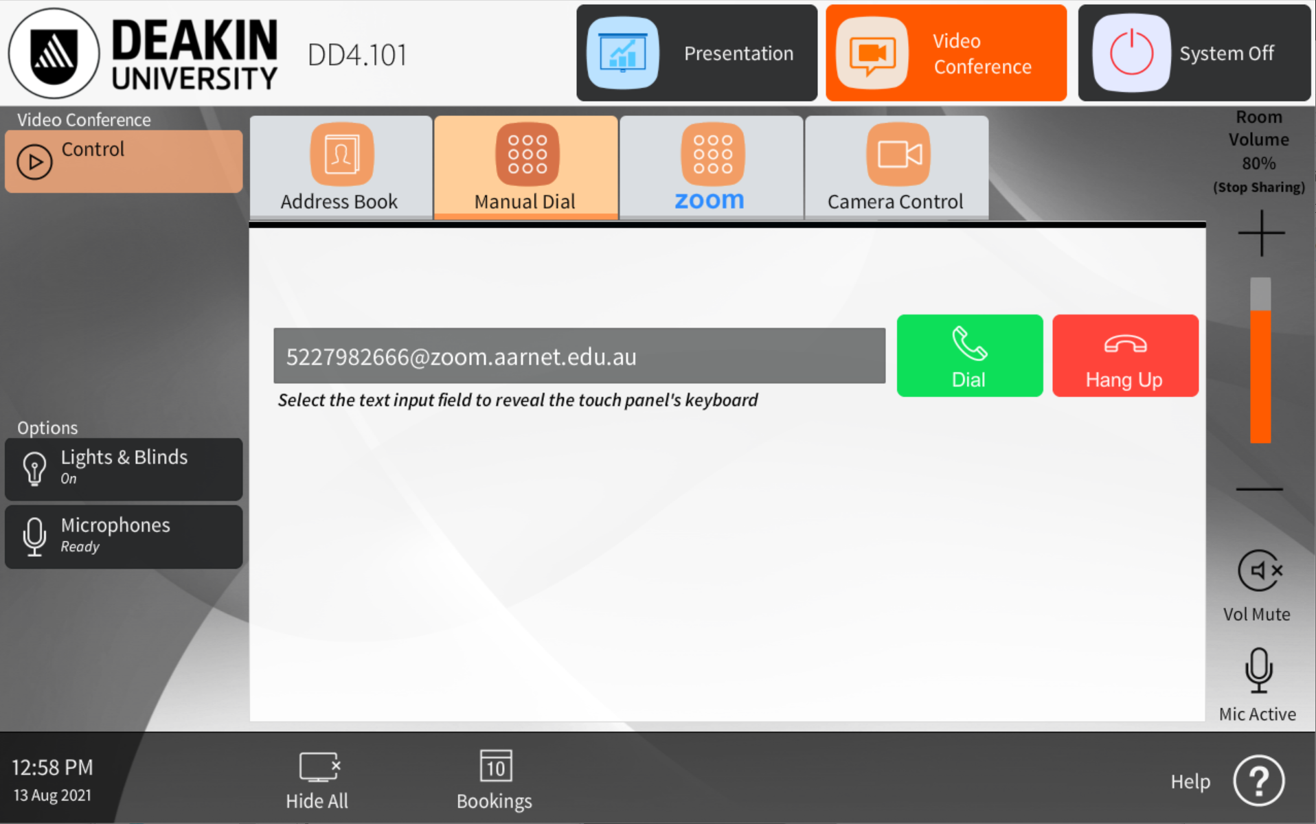 How to call a SIP address using a Deakin video conference room