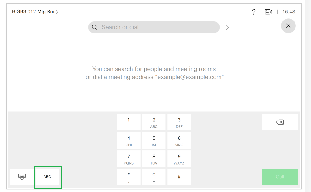 4. Type in the SIP address from the meeting invitation, and then select the green 'Call' button.