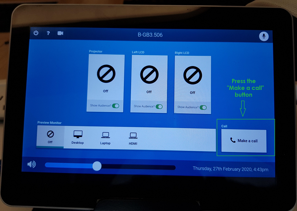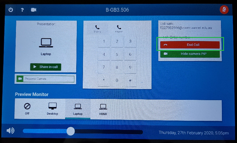 For Deakin Rooms with Touch 8 Controller, the process is very similar to Touch 10, but the buttons may look slightly different to the Touch 10 controller.