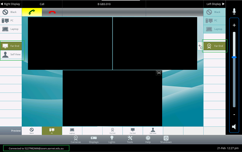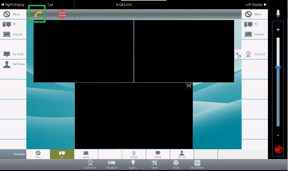 Select 'Far End Presentation' or 'Self View' or the Right Display, depending on what you would like to Display.