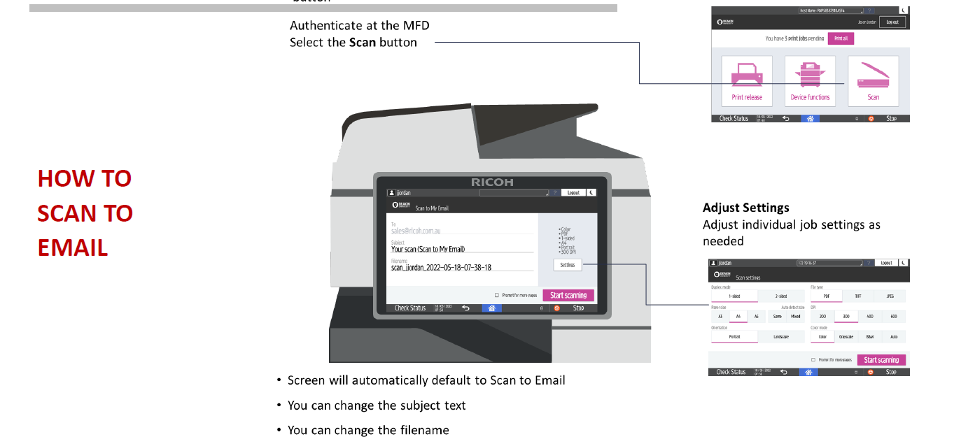 4. Once you select Scan, the screen will go the Scan to Email functions