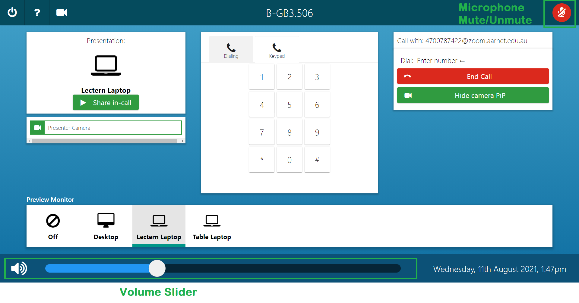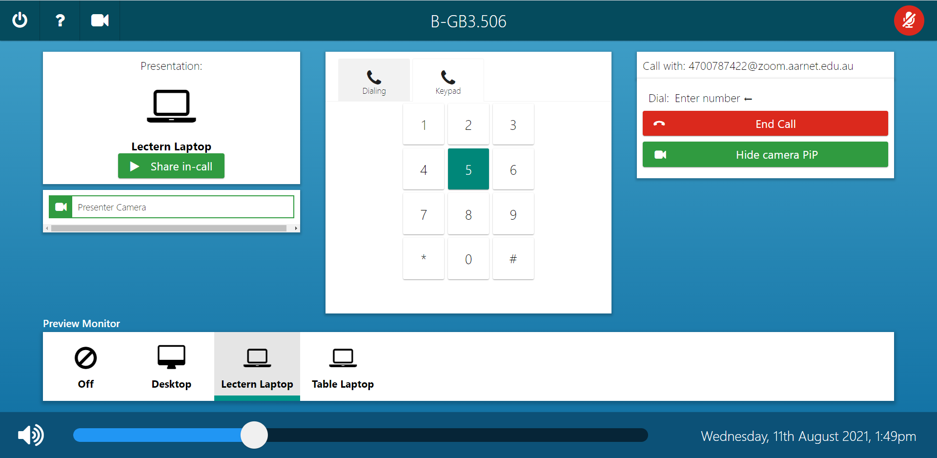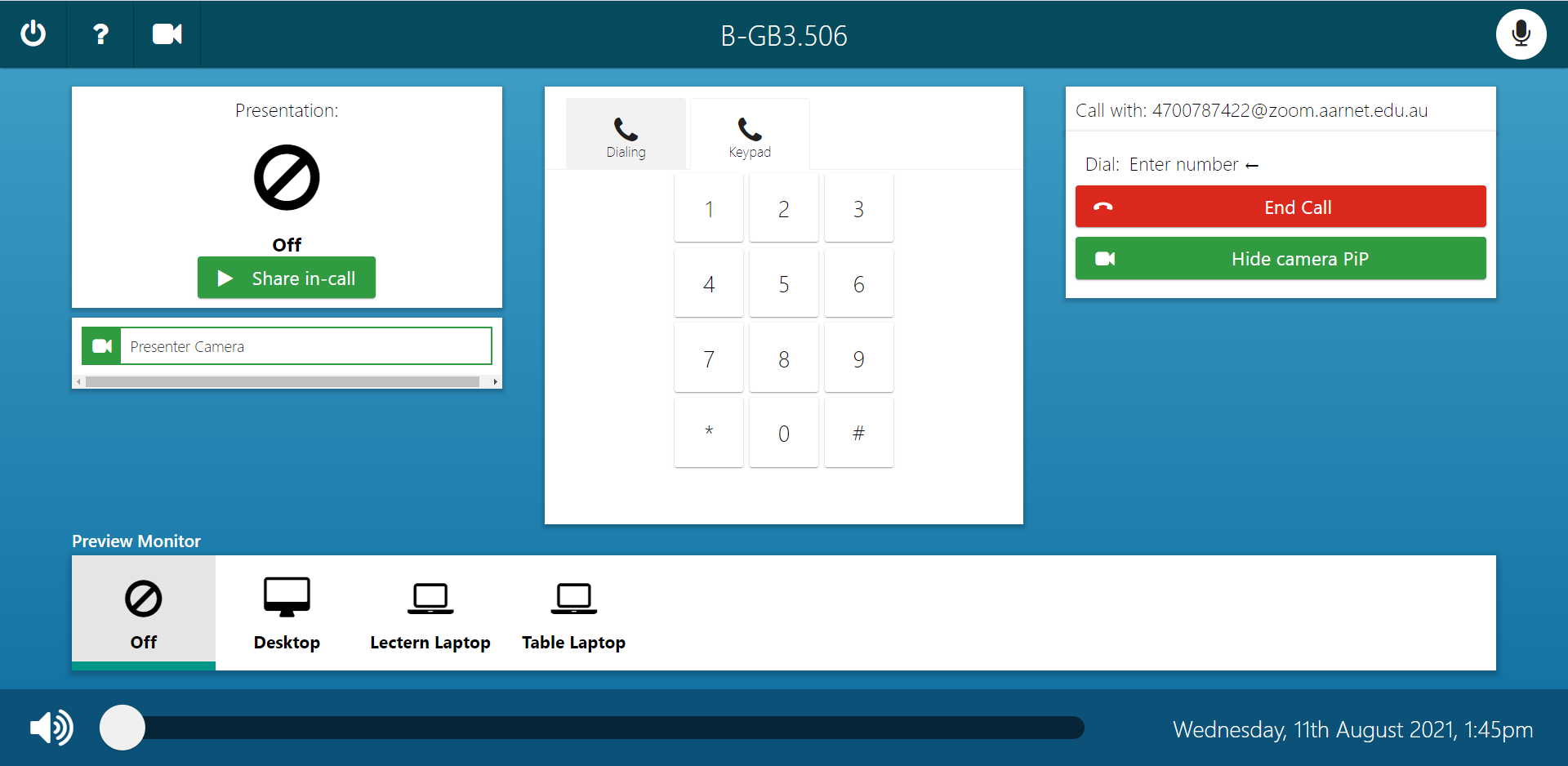 For Deakin Rooms with Touch 8 Controller, the process is very similar to Touch 10, but the buttons may look slightly different to the Touch 10 controller.